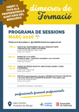A la imatge i al document adjunt, podreu consultar les sessions formatives del mes de febrer. El programa "Dimecres de formació" està obert a tots els professionals sanitaris del territori i ofereix setmanalment píndoles breus sobre temes d'interès per al sector.