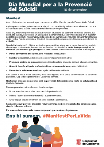 Amb aquest manifest, volem trencar el silenci, combatre l’estigma i expressar el nostre compromís col·lectiu amb la vida, la salut mental i la cura de les persones.