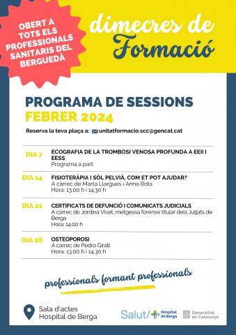 FEBRER | Píndoles de formació a l'Hospital de Berga, obertes a tots els professionals sanitaris del territori.