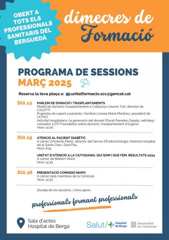 Oferta de formació del mes de març a l'Hospital de Berga dins el programa "Dimecres de Formació", oberta a tots els professionals sanitaris del territori.