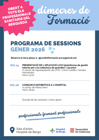 Tornen els Dimecres de formació després de les vacances de Nadal. Dues sessions aquest mes de gener, obertes a tots els professionals sanitaris del territori.